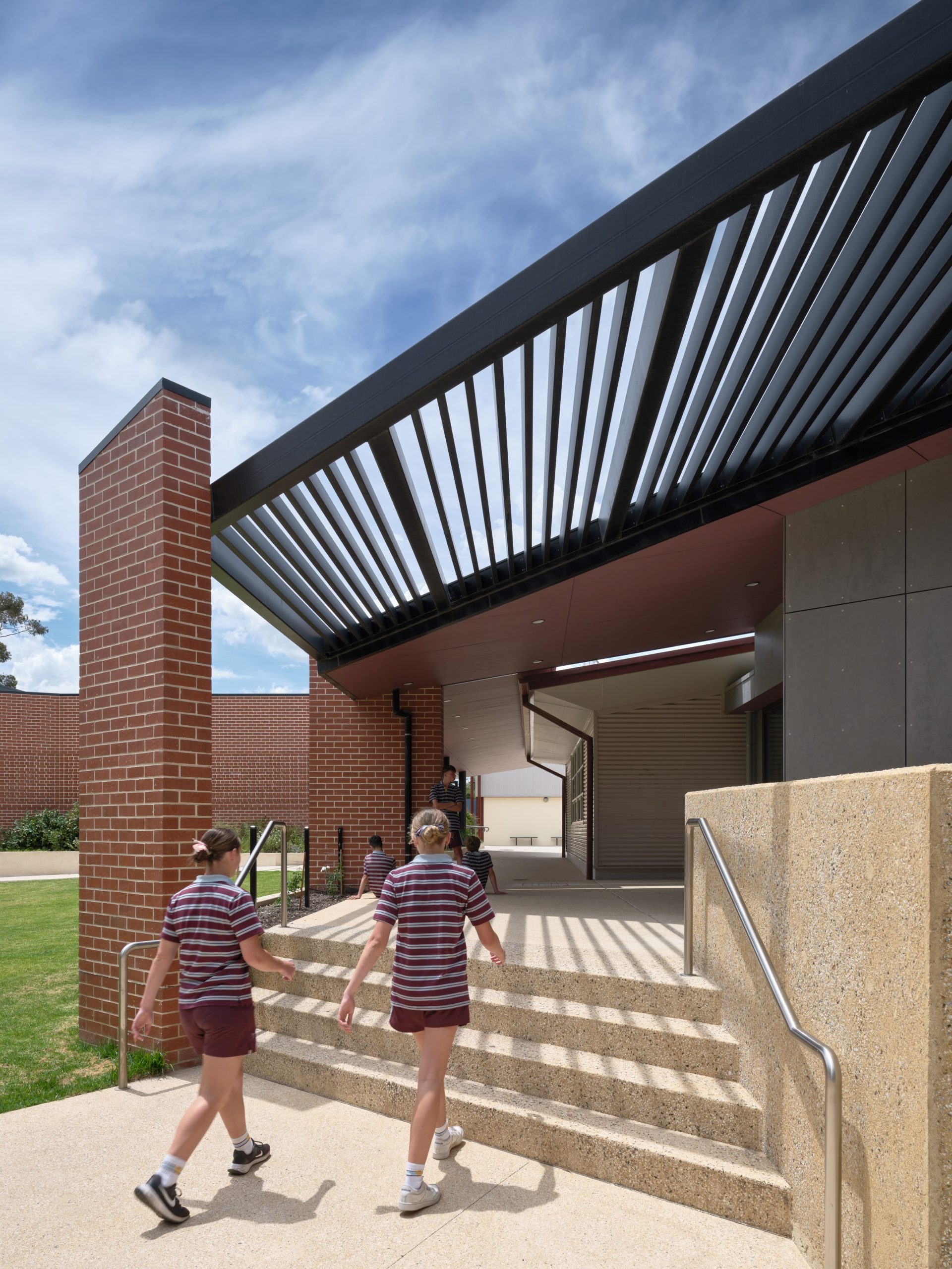 The initial stage of development comprised single-storey buildings dedicated to Arts and Technology education. The structural system featured conventional slab-on-ground construction with masonry veneer framing hiding a structural steel framing supporting the roof structures. The design focused on adaptability and integration with the school’s existing infrastructure and landscape.